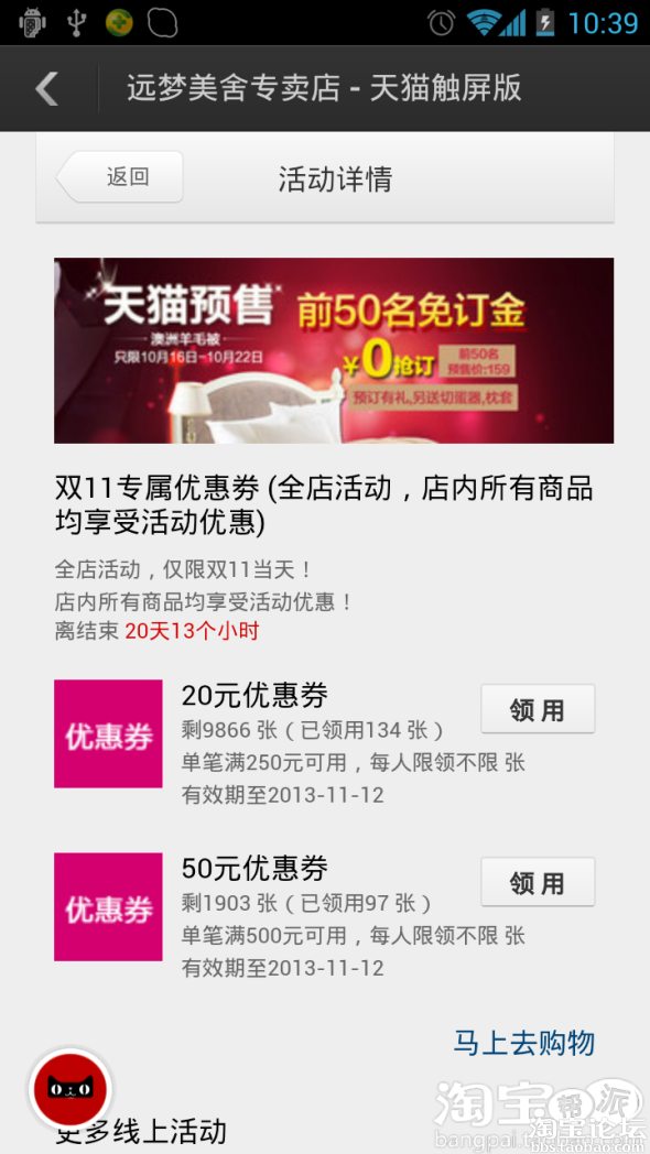 OK!基本设置的情况就是这样,我们可以在手机上点击我们无线店铺进行领取优惠劵啦!