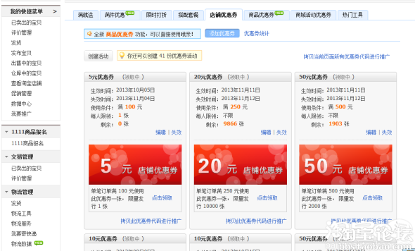 第二步:进入创建店铺优惠劵(根据不同卖家店铺活动,创建不同优惠劵)